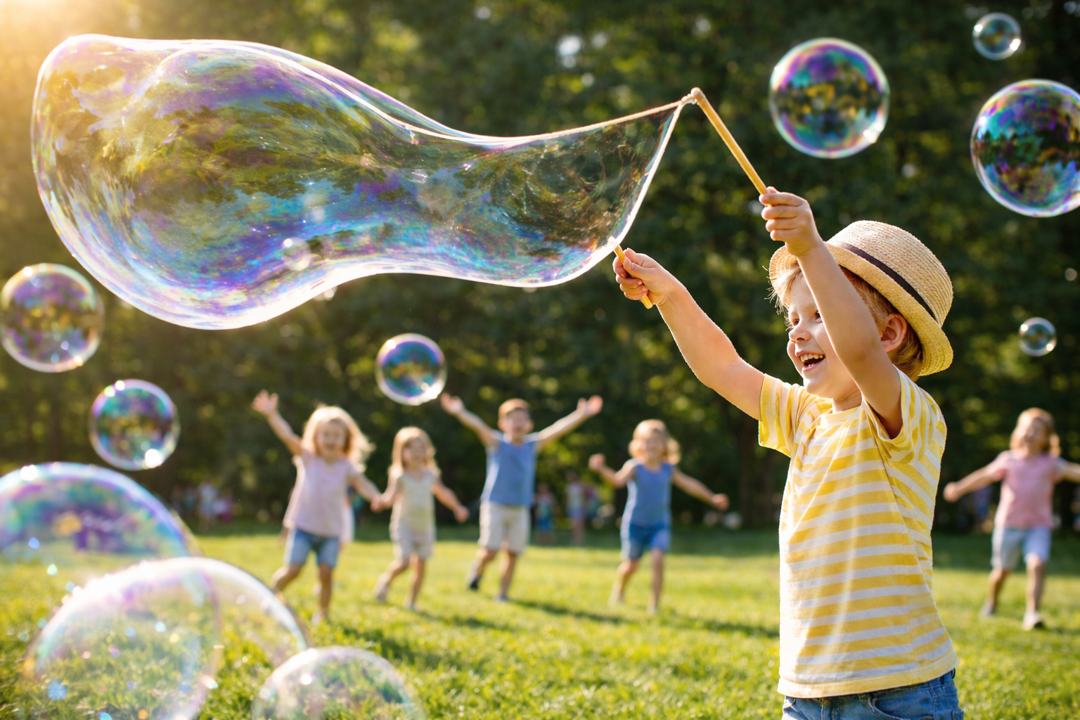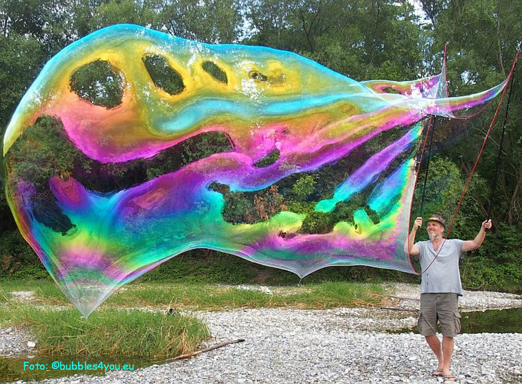 Ökologische Riesenseifenblasen Konzentrate mit dem WOW-Effekt. Einfach Wasser hinzufügen, mischen, fertig!